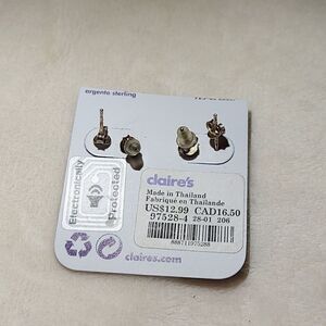 Genuine Crystal Sterling Silver Stud Earrings 2 pair
