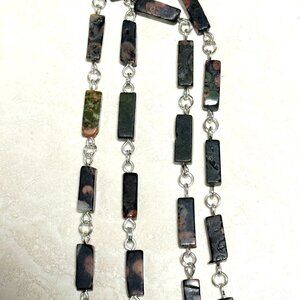 15 mm x 5 mm dark green ocean jasper rectangular beads, 30 mm silver color "Cat on the Moon" pendant
