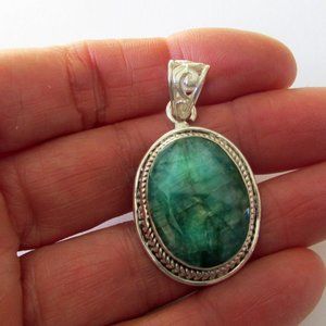 Genuine Emerald Gemstone Pendant 925 Sterling Silver May Birthstone
