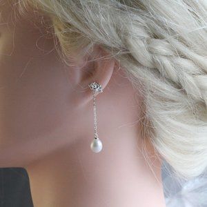 Genuine Freshwater Pearl Earrings Studs 925 Sterling Silver Long Earrings