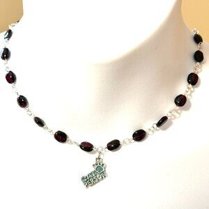 Genuine Garnet Short Necklace, Natural Gemstone w/ Cat Person Paw Print Pendant
