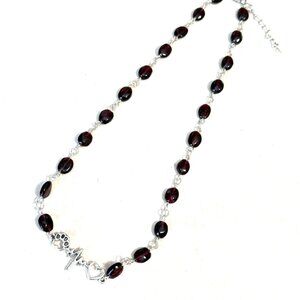 8 mm x 7 mm oval garnet beads, 34 mm x 13 mm (1 3/4") silver color "Paw Print Heart Beat" pendant