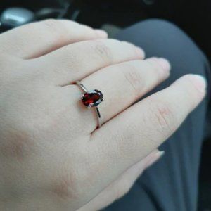 This is a genuine garnet ring that looks stunning in person. It feels solid in your hand, made of sterling silver, and stamped s925.