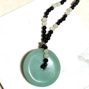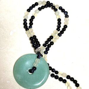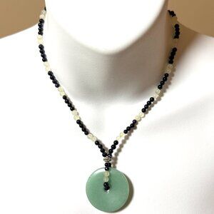 Genuine Gemstone Green Aventurine Donut Pendant & Prehnite Beaded Necklace