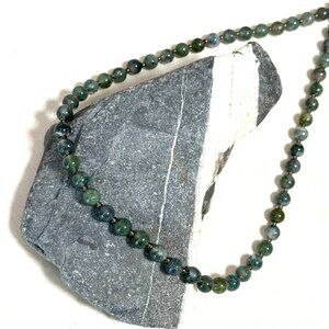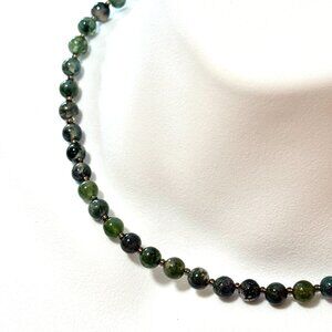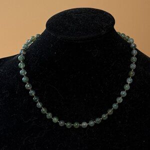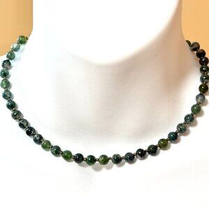 Genuine Gemstone Green Moss Agate Beaded Short Necklace
