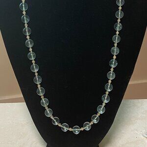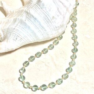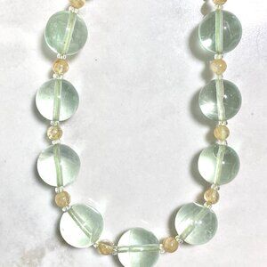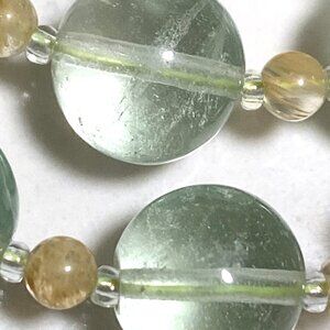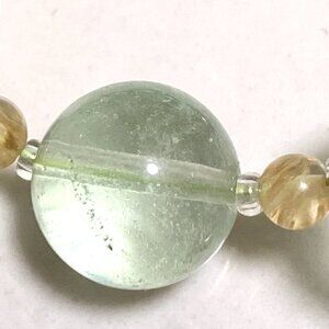 Genuine Green Fluorite & Golden Rutilated Quartz Gemstone Beaded Necklace