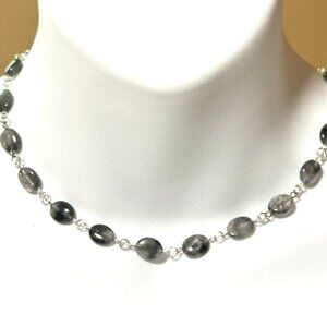 Genuine Grey Tourmalinated Quartz Short Necklace, Gemstone Adjustable Necklace