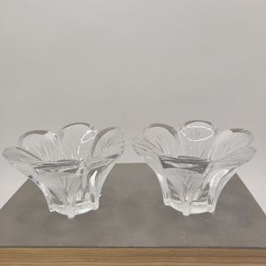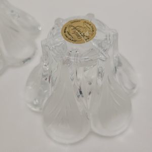 Genuine 24% Lead Crystal France Daisy Flower Candlestick Holders Set of 2