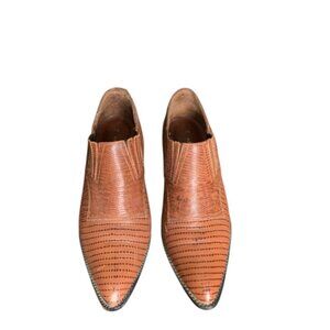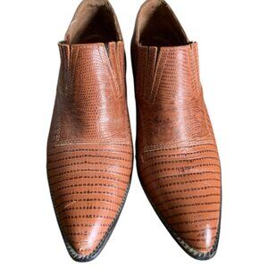 leather booties, western ankle boots, pointed toe shoes, made in brazil, brown leather shoes, size 7 boots, classic low heel, cowgirl chic, slip on booties, stylish everyday boots