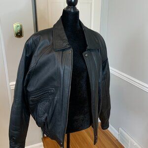 The Genuine Leather Bomber Jacket from Ash Creek, a timeless classic design. Crafted with meticulous attention to detail, this jacket embodies sophistication and durability. The rich black hue exudes elegance, making it a versatile piece for any wardrobe. Available in men's small, it offers a tailored fit that accentuates your silhouette while ensuring comfort. Elevate your style game with this Ash Creek masterpiece, where quality meets craftsmanship.
