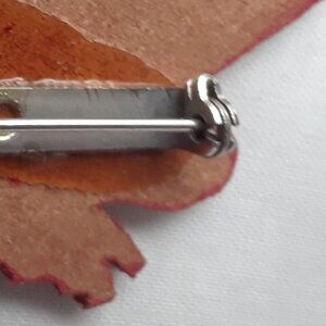 3"wide x 2"long sturdy leather Holly brooch in excellent condition This is a really lovely little piece