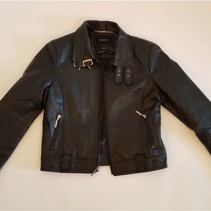 Ooooo! This guy is a rare, Genuine Black Leather, Isaac Mizrahi, Unisex Medium, Funky Chic Rock and Roll Lightweight Motorcycle Jacket.