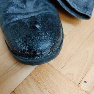 They are in good used condition, overall strong workmanship. The leather has some signs of wear: marks, small scratches, and rips, flakes - please check the last 7 photos for a closer look at some of the wear places.