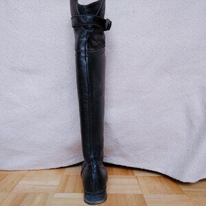 💯% Genuine Leather Over the knee Black Boots - low heels - size 36