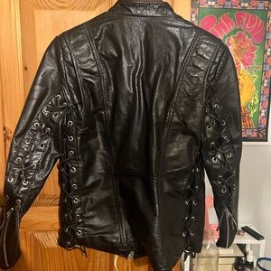 Lace Up detailing on arms and back, additional zippers at the wrists and quilted inside lining