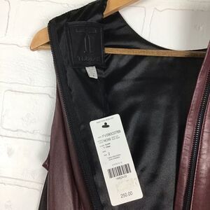 This Tristan genuine leather sheath dress is the perfect mix of sophistication and bold modern style. With its fitted silhouette and colorblock detail in maroon brown at the neckline, it’s designed to flatter and command attention. The luxurious leather finish and sleek shape create a powerful siren office vibe — chic enough for boardrooms yet stylish enough for evening events. Pair with tall boots for a striking polished look that blends confidence and allure. Great pre-owned condition, see the pictures.