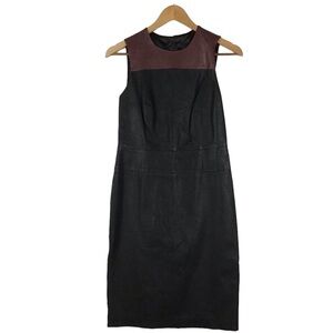 Genuine Leather sheath dress Tristan colorblock black &maroon size 2 power dress