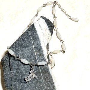 Genuine Milky Quartz Short Necklace, Gemstone & Cat Person Paw Print Pendant