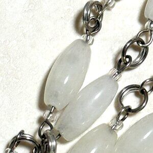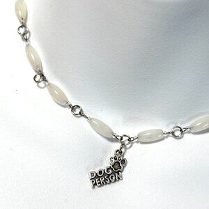 12 mm x 6 mm milky quartz barrel beads, 3/4" (21 mm) silver color "Dog Person" pendant
