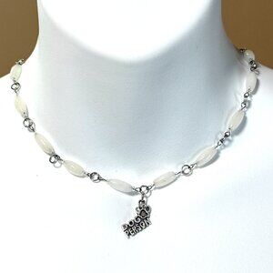 Genuine Milky Quartz Short Necklace, Gemstone w/ Dog Person Paw Print Pendant