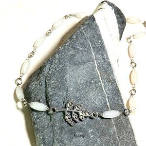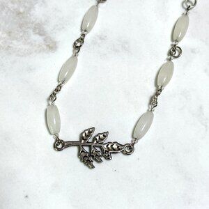 Genuine Milky Quartz Short Necklace, Natural Gemstone w/ Leaf Branch Pendant