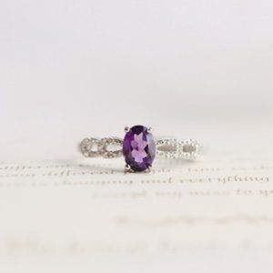 Genuine Natural Amethyst Stone Ring Purple Sterling Silver Dainty Ring