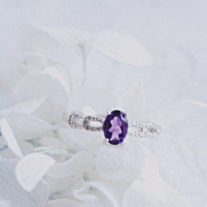 Authentic amethyst crystal ring for February birthstone, authentic amethyst stone distinguished by its remarkable translucency and beautiful shine, embellished with glittering crystals and set in 925 sterling silver band resembles a real diamond.