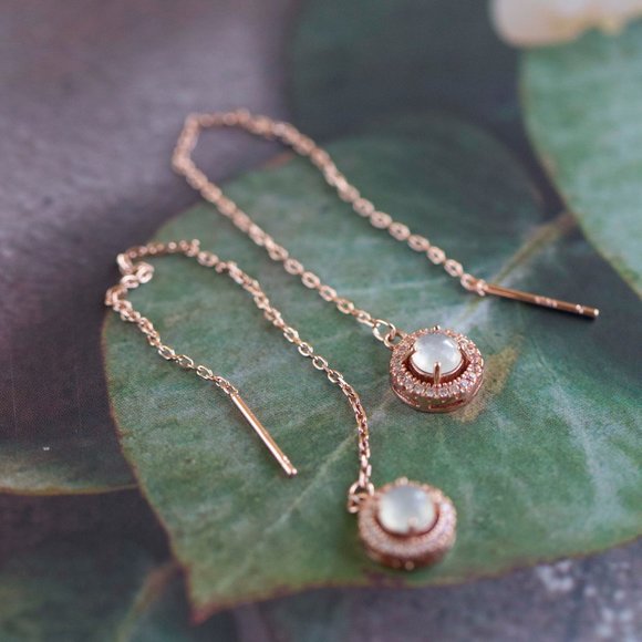 Note: The ones of the last image on the model's earrings are hoop earrings which were sold, but its style and size is exactly like the threader ones in the listing