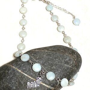Genuine Pale Green Serpentine Necklace, Cute Dog Person Paw Print + Gemstone