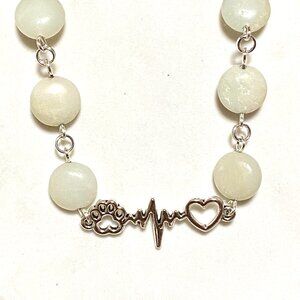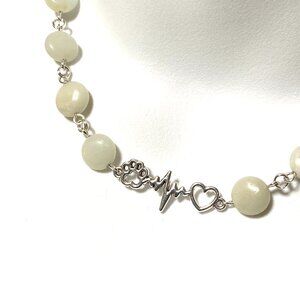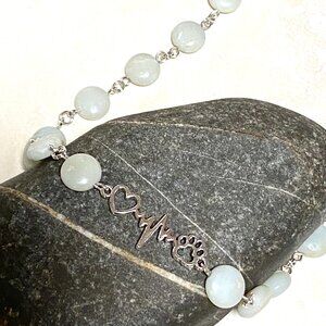 Genuine Pale Green Serpentine Necklace, Paw Print Heart Beat Pendant + Gemstone