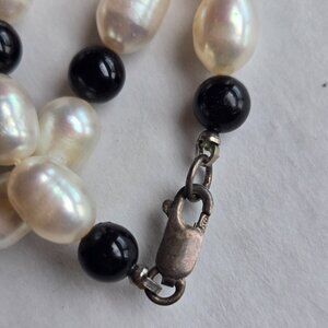 Genuine Pearl & Black Onyx 925 Sterling Silver Necklace