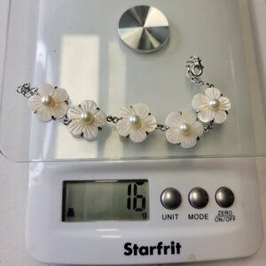 Genuine Pearl Bracelet with Mother of Pearl Petals and White Pearl Bracelet