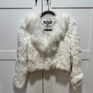 Genuine Rabbit Fur Coat with Genuine Fox Fur Trim Collar