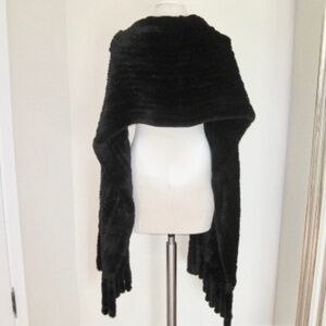 Genuine rabbit fur shawl/scarf with tassels. Color: Black. SIZE: See Description. Features: