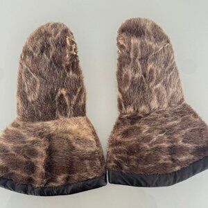 Matching mits more heavily worn, some leather bare of fur. Please see photos for more details.