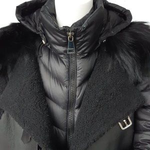 Rudsak black genuine leather sheepskin/shearling vest with real fur collar. Size S/M. The fur is genuine Asiatic raccoon. Very high quality piece with silver detailing. Can be worn on its own or on top of a puffer as shown in the the last few pictures. Puffer jacket is not included in the listing. Worn only a handful of times and in completely new condition. Very stylish key piece for every winter wardrobe.
