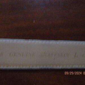 I'm told it is Cobra skin, but I can't swear to it. All I can say it is real snake skin. It states L and the furthest it will cover is approximate 35 inches.