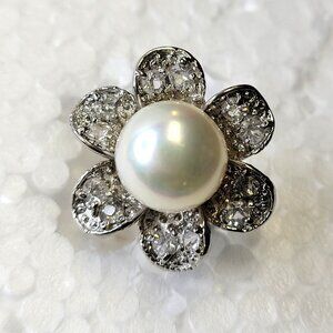 Genuine White Pearl and Swaroski Flower Ring Size 5.5