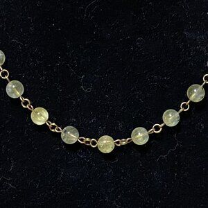 Genuine Yellow Green Prehnite Necklace, Gemstone Bronze Chain Layering Necklace
