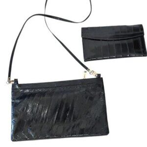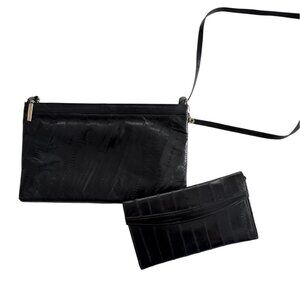 Genuine black vintage eel skin leather wallet and crossbody purse set