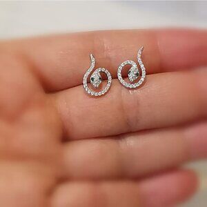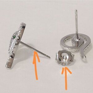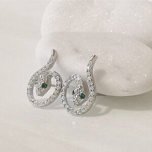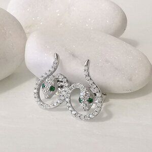 Genuine emerald gemstone CZ snake stud earrings in Sterling Silver 🆕