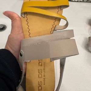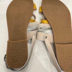 Genuine leather NWOT mustard and Cream Slip-On Sandals.