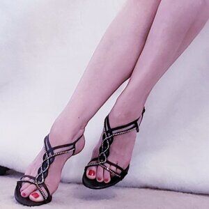 Brand New -Feminine and elegant, Genuine Leather with Rhinestone High Heels Shoes
