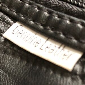 Genuine leather laptop/briefcase real nice bag , used with a tear in fabric. This laptop was mine and I made the mistake of loading it with books and a laptop and tore the fabric on the side. It is an easy fix but I am limited for time. I used it for about 6 months when working out of the house, holds pens, pencils, and other small items I. Place, laptop, paperwork. Front pocket, lay down and unzip, handle and strap. Lots of life in this leather bag and it looks nice too. Price reflects slight tear in cloth.
