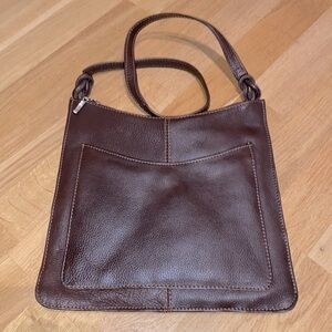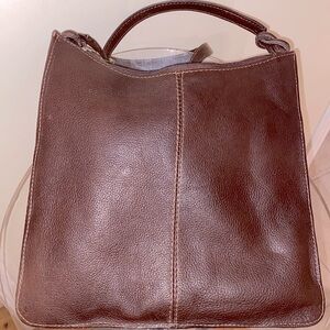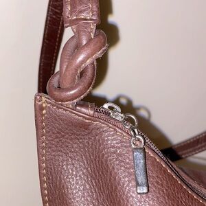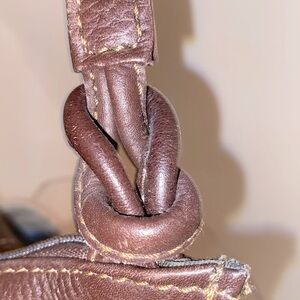 Genuine leather unbranded bag w/silver tone zipper pull, knotted straps. 🤎