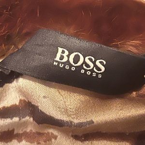 Beautiful genuine red rabbit fur jacket in size medium to large. 8-10. In very good condition. Hugo boss. Caramel and brown colours. Very warm jacket.