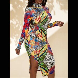 #AbstractPrintDress #BodyconMidi #CutoutDress #Psychedelic #StatementDress #Clubwear #PartyDress #LongSleeveDress #AnimalPrintMix #GraffitiPrint