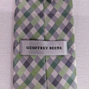 Geoffrey Beene Men’s 100% Silk Tie Checkered Pattern Green/White/Gray