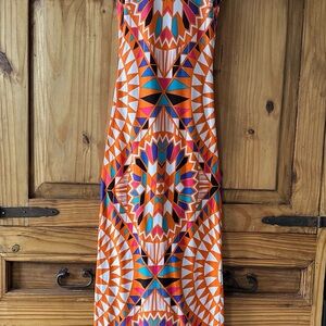 Geometric Aztec Southwestern Long Tank Maxi Dress Orange Blue Turquoise - XS