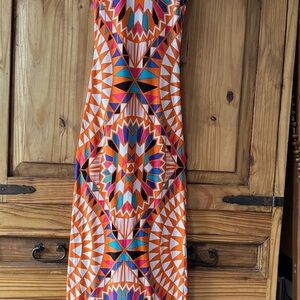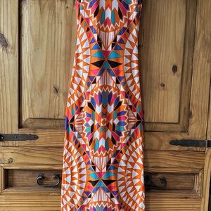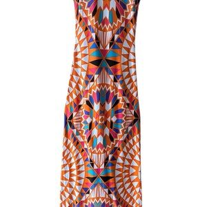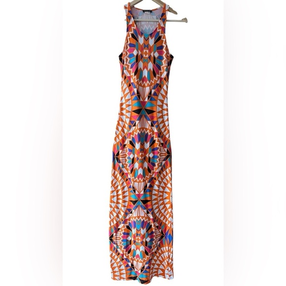 Geometric Aztec Southwestern Long Tank Maxi Dress Orange Blue Turquoise - XS